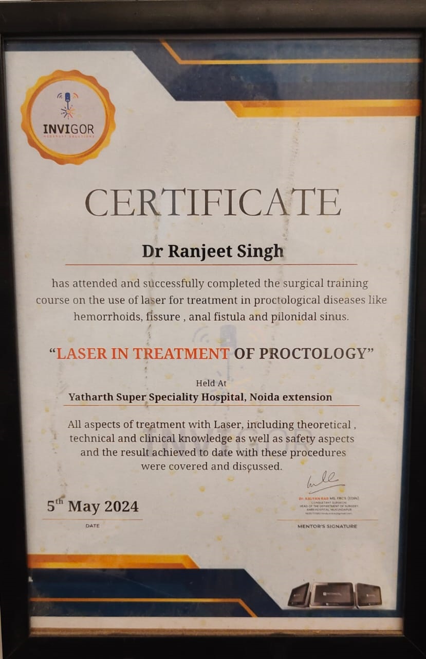 It has been a few months now, and I feel completely normal — no pain, no bleeding, and no fear of going to the toilet. I am very thankful to the Dr. Ranjeet Singh and team for their care, patience, and guidance. I would definitely recommend anyone suffering from piles to not delay and get treated here."